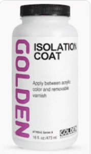 You can buy an isolation coat all pre-prepared for you made by Golden, but I have always used their soft gel gloss medium and thinned it down with two parts water to one of medium. Applying two or three thinner coats works best as you may miss an area on the first couple of passes, which will leave that part vulnerable if it needs to be cleaned.