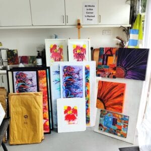 • The Pros: There is no better way to sell the story of your work than by inviting people into the space where it’s made. It builds deep connections and allows you to show a large body of work. For the past 15 years I have taken part in Open Studios, made fantastic connections and also gained students for classes I deliver in my studio. It has also allowed people who have attended classes I have taught at their art groups an opportunity to see all the work I create. I tend to give generous discounts to these visitors. A win-win for everyone.
