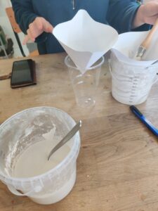 We were shown how to make the rabbit skin glue, which is the first layer of the corner, then the gesso which goes over the rabbit skin layer and then a layer of bole (see below), which is what you gild onto.